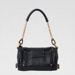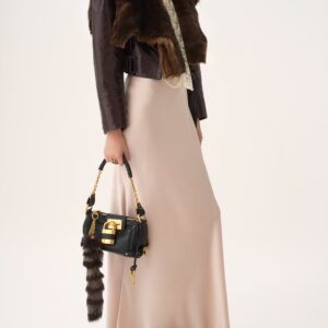 - Short top handle with gold plated metal links
