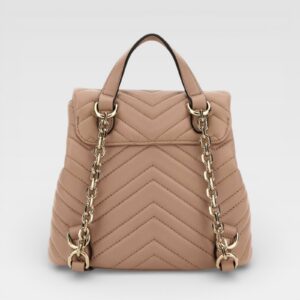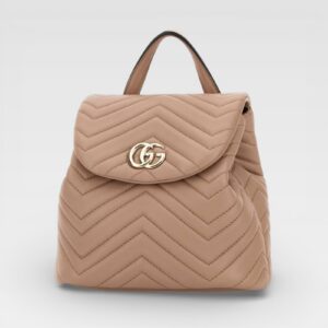 This Gucci backpack features a quilted chevron quilted design and elegant gold GG hardware on the front. It has a compact structure, curved flap and visible top handle for hand-carrying, bringing a sophisticated and modern touch to everyday looks.