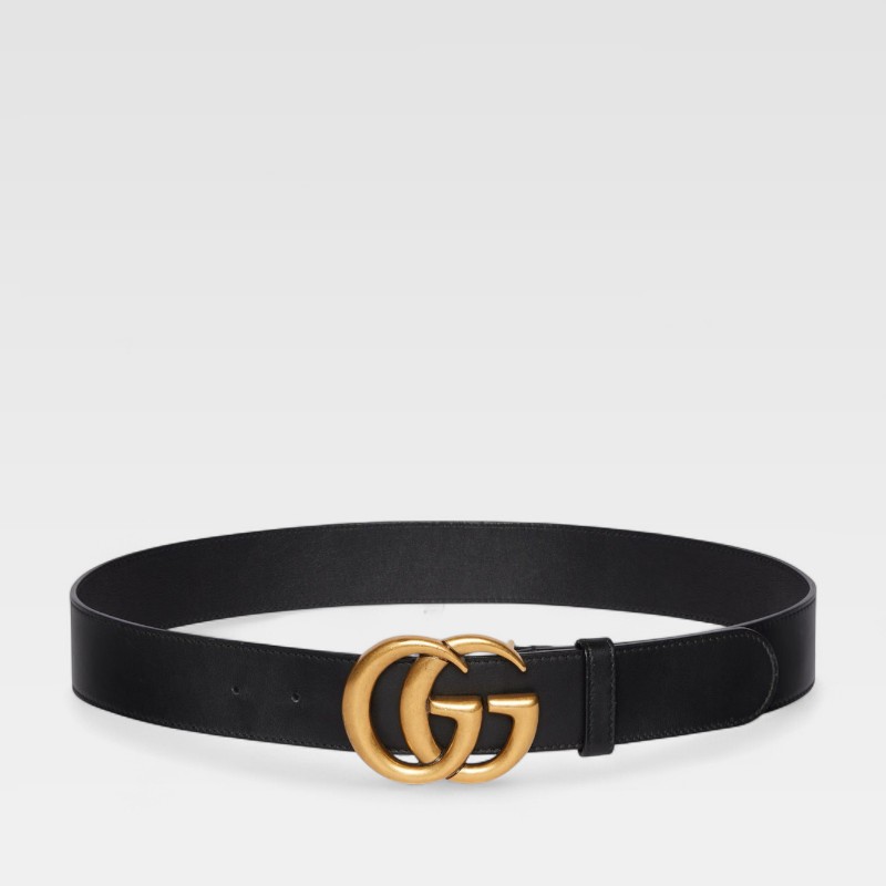An emblematic accessory from the house of Gucci. The GG Marmont Wide Belt is made of smooth black leather and is distinguished by its Double G buckle in aged gold tone, inspired by a design from the 70s. Its wide format makes it ideal to highlight the waist over blazers, dresses or high-waist pants, adding a classic and powerful touch to any look.