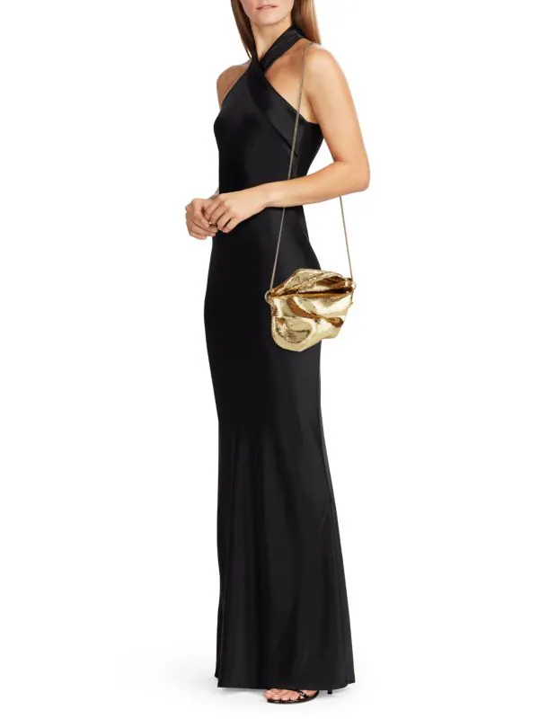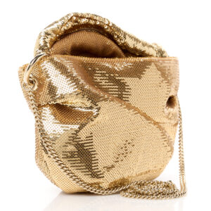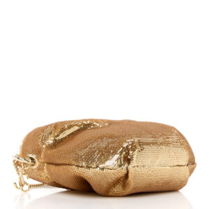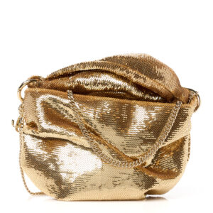 Eye-catching design and fluid texture. The Bonny by Jimmy Choo in gold finish is a piece that combines the shine of sequins with a soft and draped silhouette that fits naturally. Its pouch-like design makes it ideal for evening events, while the gold metallic chain allows it to be worn comfortably over the shoulder or cross-body.