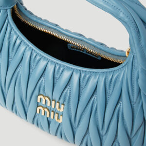 The Wander matelassé nappa leather hobo bag embodies a refined reinterpretation of a timeless icon within the Miu Miu collections, with a fusion of retro inspiration and modern femininity. Its matelassé lambskin leather exhibits a sophisticated three-dimensional texture, while the timeless and functional hobo silhouette offers an impeccable and adaptable poise. Each cultivated element - from the zipper to the interior finish - enhances its exquisite character without being overdone.