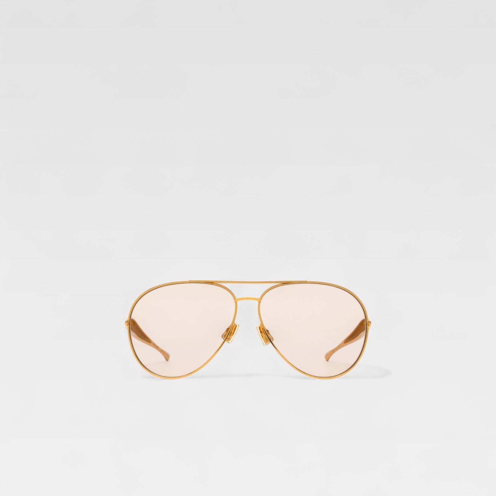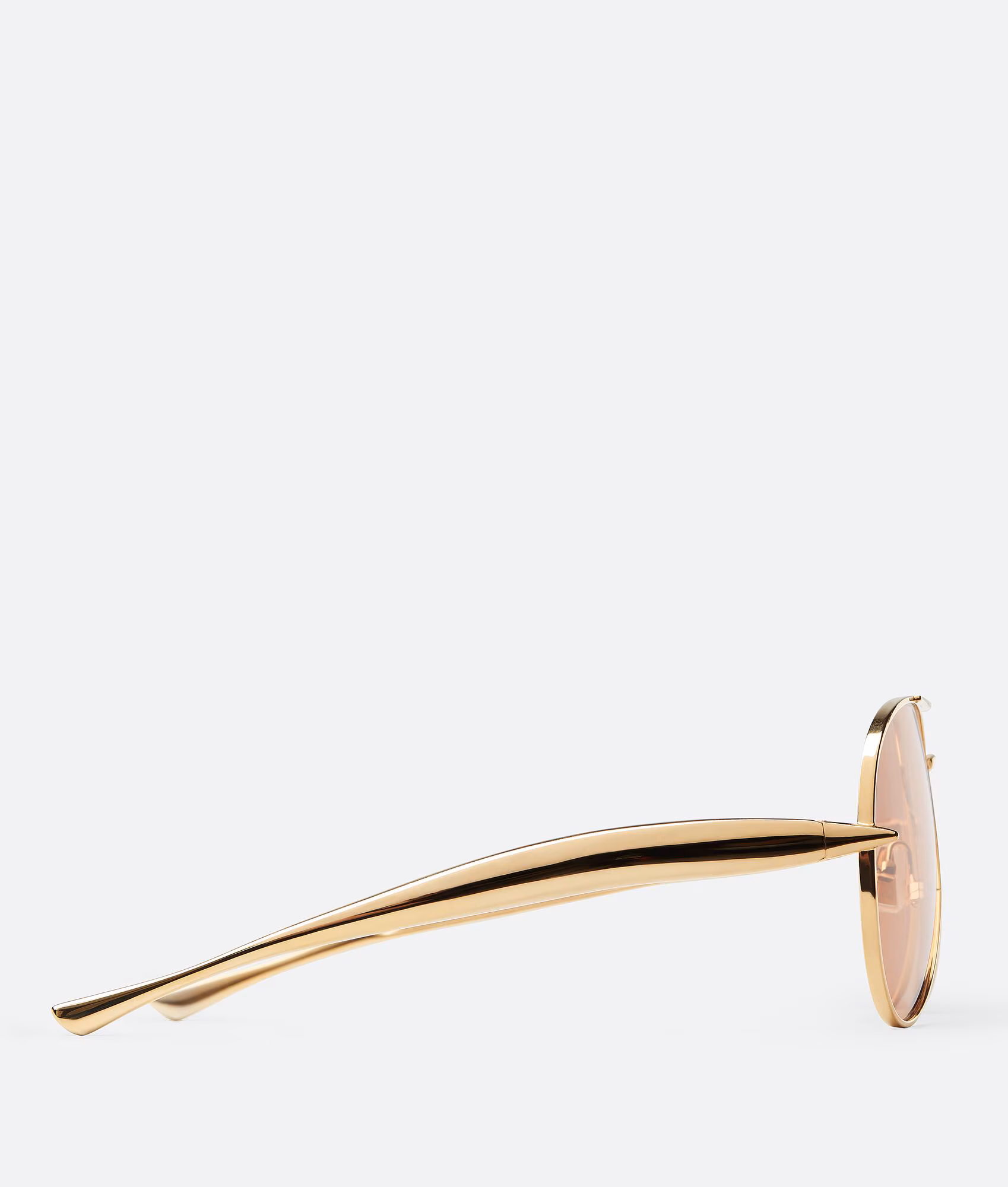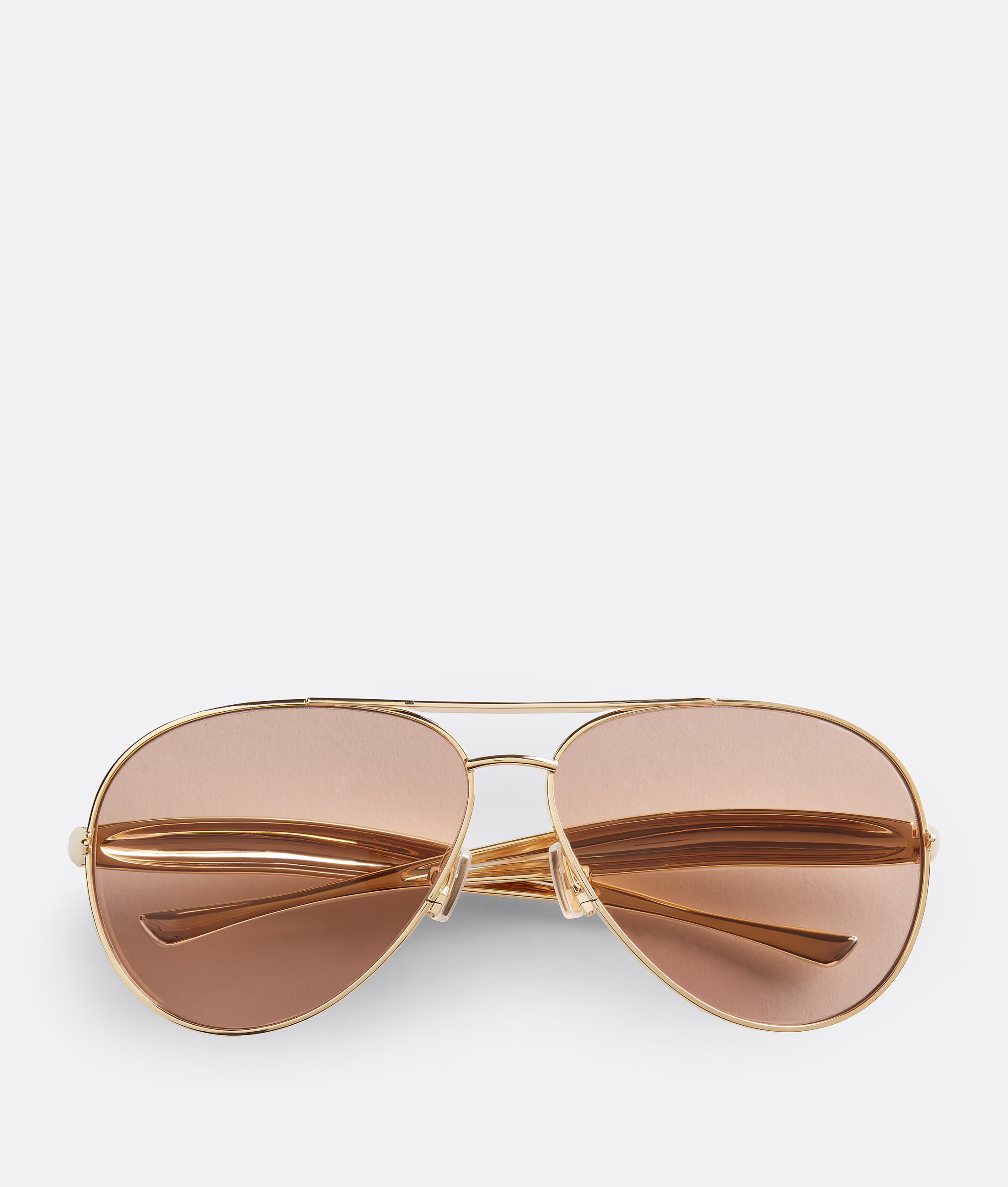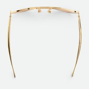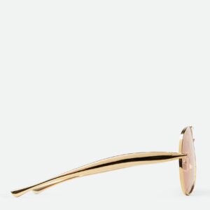 Un aviador reinterpretado con la identidad distintiva de la maison italiana. Los Sardine Sunglasses de Bottega Veneta presentan una montura metálica en acabado dorado con el clásico doble puente, aportando estructura y ligereza. Los cristales marrones degradados ofrecen protección total contra los rayos UV, mientras que las varillas metálicas delgadas mantienen un diseño elegante y refinado.