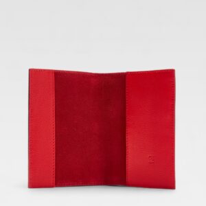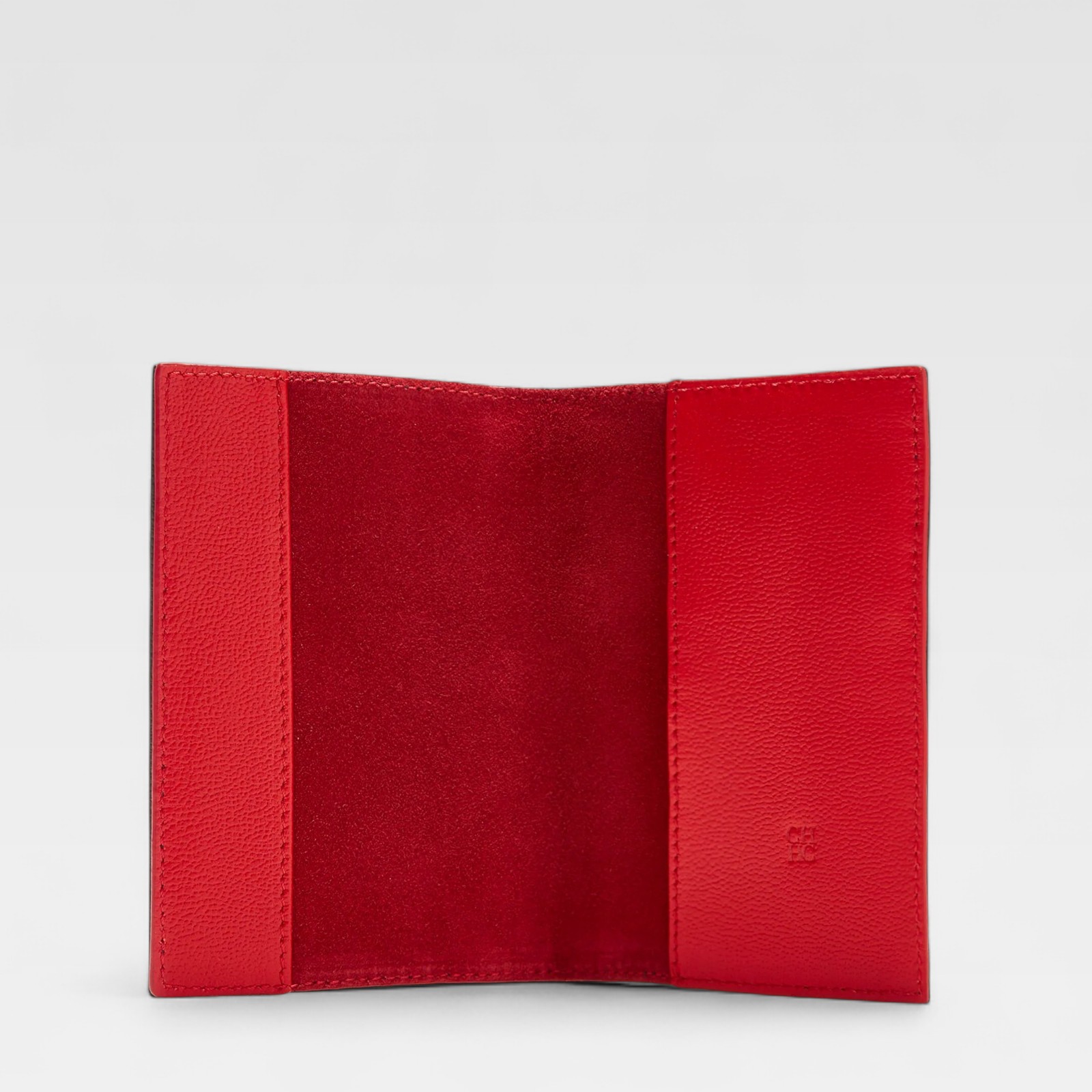 Diseñado para los viajeros que aprecian la estética y el orden, el porta pasaporte Traveller de Carolina Herrera destaca por su exterior en lona recubierta con el monograma “CH” repetido en tonos marrón, enmarcado por bordes de piel. Al abrirlo, revela un interior vibrante en cuero rojo liso y gamuza, con compartimentos prácticos que aseguran el pasaporte con elegancia y firmeza.