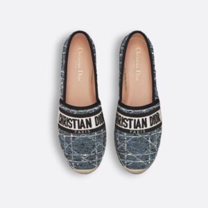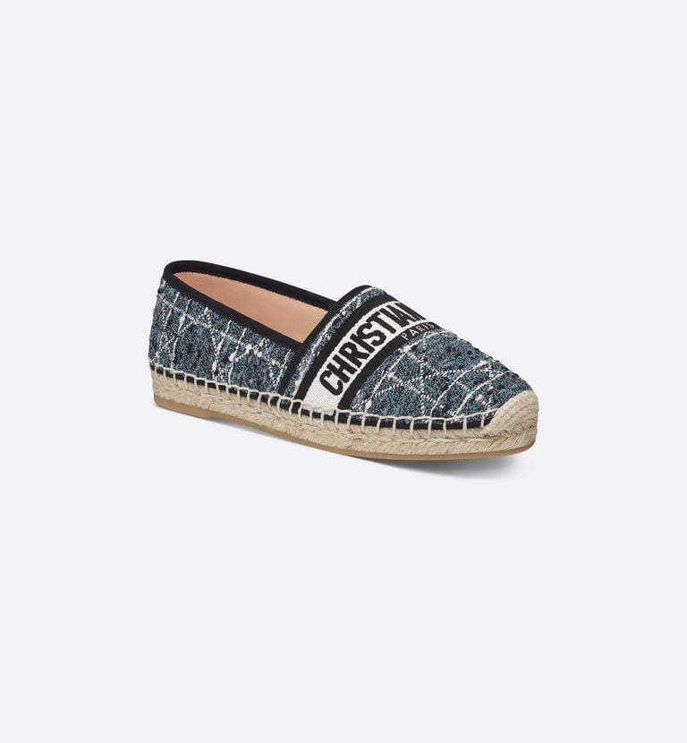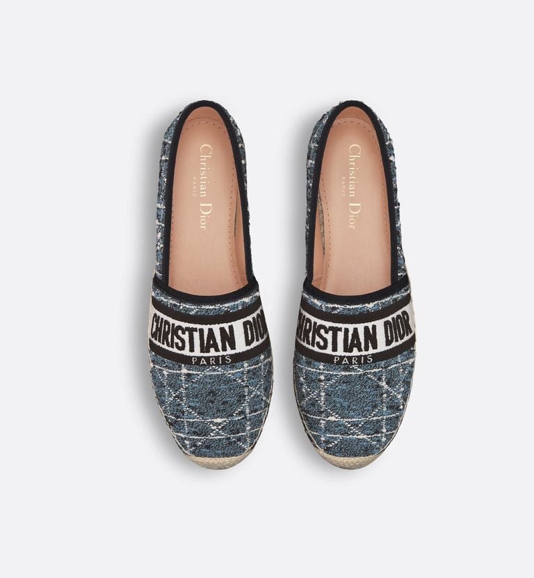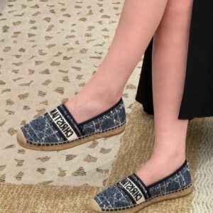 Un clásico de verano reinterpretado con el sello distintivo de la maison. Estas alpargatas de Dior están confeccionadas en denim azul con bordados decorativos y el icónico nombre “Christian Dior Paris” en contraste sobre la parte superior. La suela de yute natural, combinada con una base de goma, aporta comodidad y resistencia, mientras que su estilo versátil las convierte en el calzado ideal para looks relajados y contemporáneos.