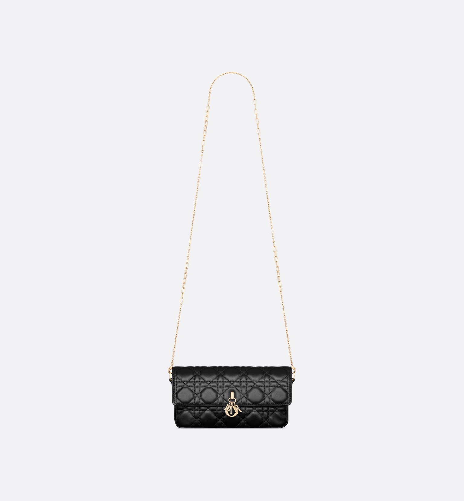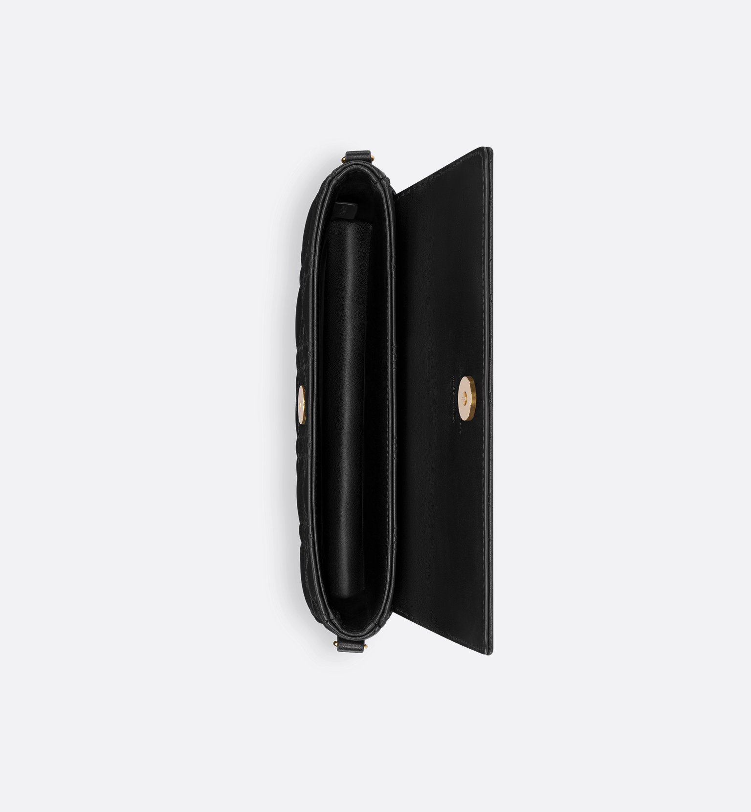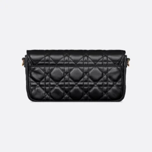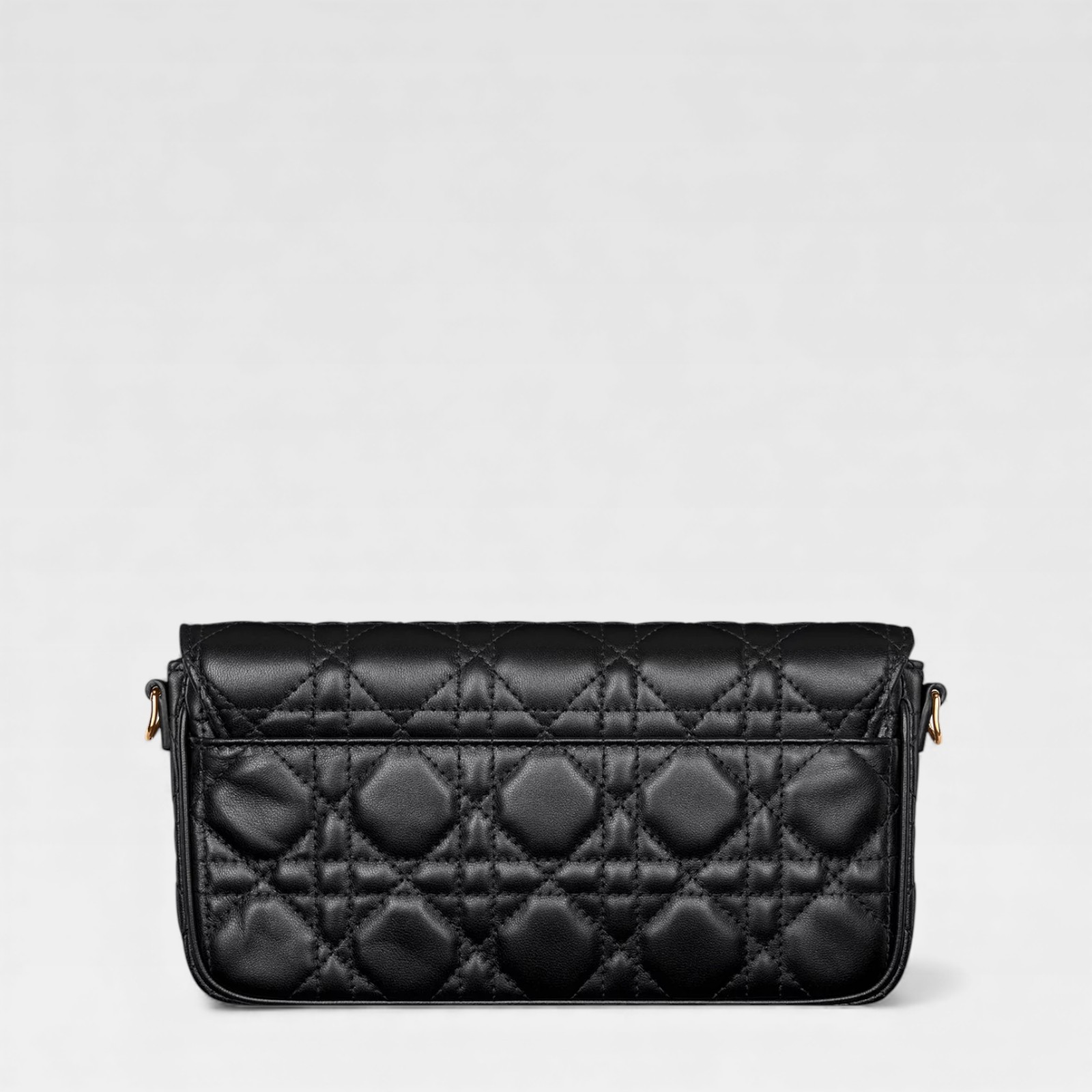 Confeccionado en piel suave color negro y trabajado con el emblemático pespunte Cannage, el bolso Dior My Dior está confeccionado en piel negra con el distintivo pespunte Cannage de la maison. Su solapa frontal con botón magnético está adornada con el charm metálico colgante ‘D.I.O.R.’, que aporta movimiento y carácter. En el interior, se encuentra una cartera integrada con múltiples ranuras para tarjetas y un bolsillo con cremallera, todo organizado con precisión. Ideal como clutch o para usar con correa (no incluida en las imágenes).