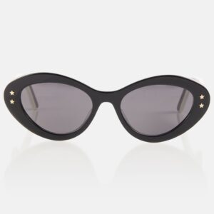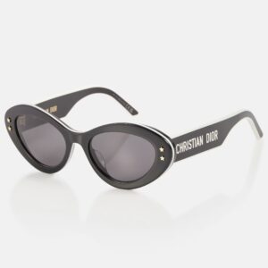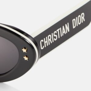 Estilo audaz con un aire contemporáneo. Los DiorPacific B1U presentan una montura cat-eye de líneas gruesas en acetato negro brillante, con lentes oscuros que garantizan protección solar completa. Las patillas anchas están adornadas con el logotipo DIOR en contraste blanco, un detalle gráfico que aporta identidad y carácter.