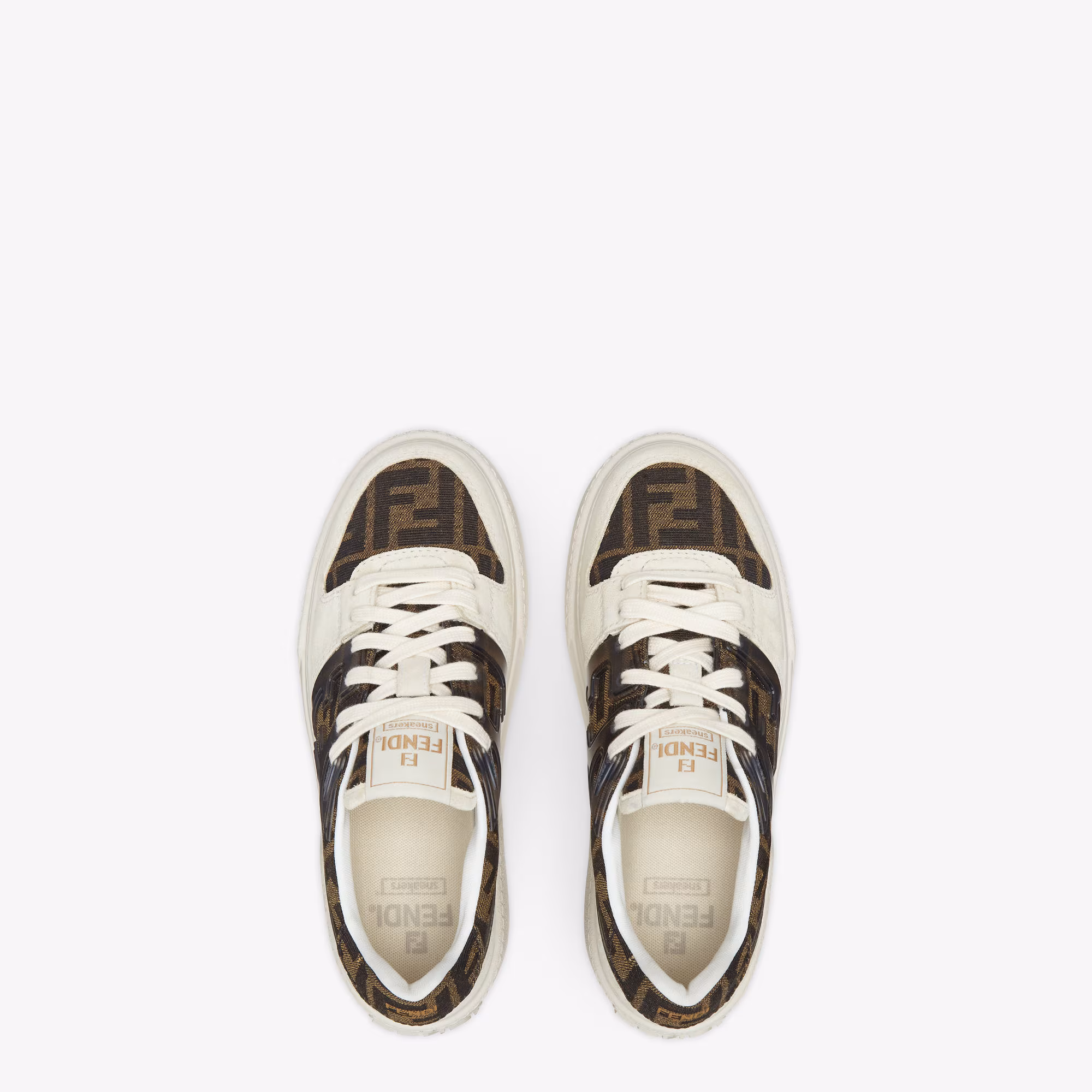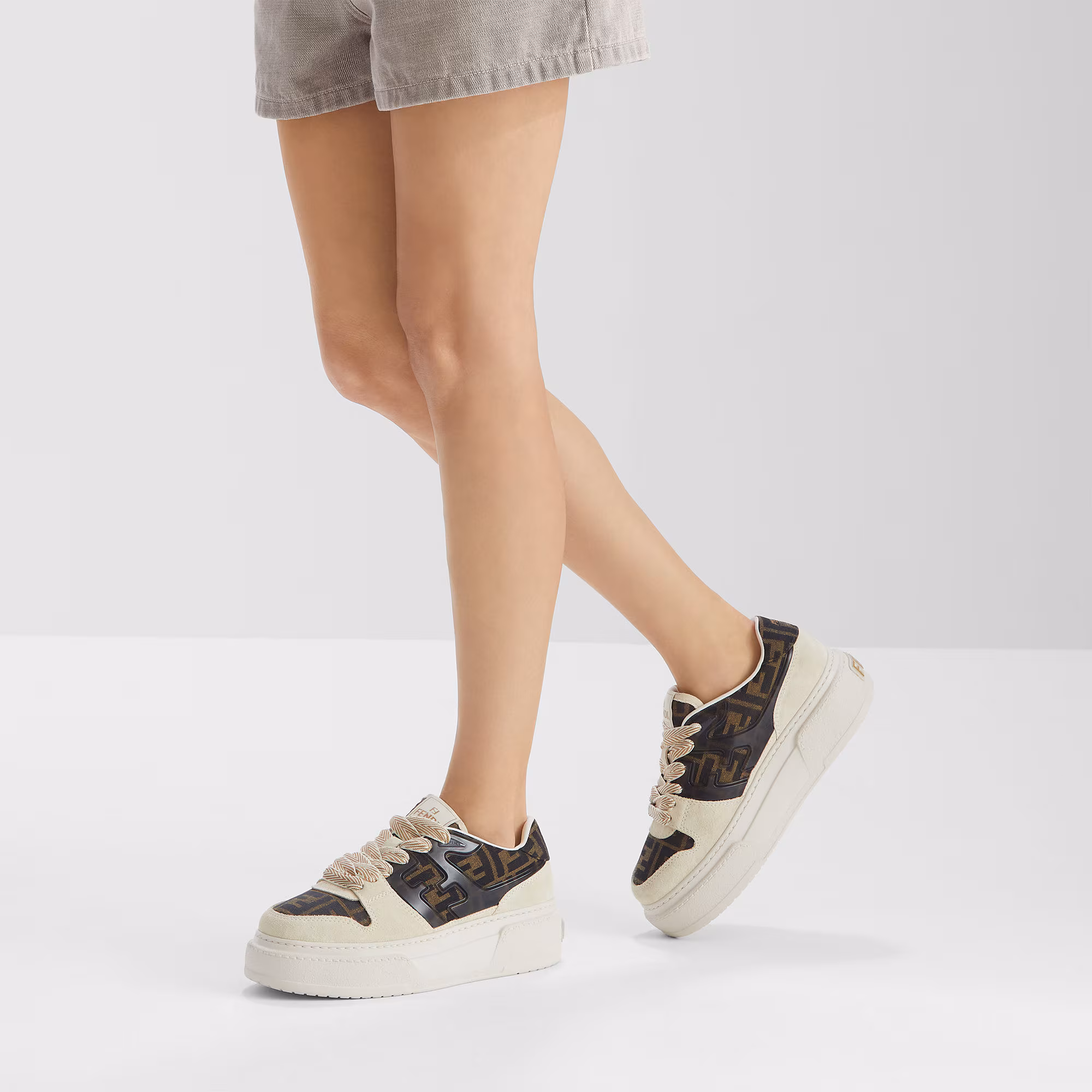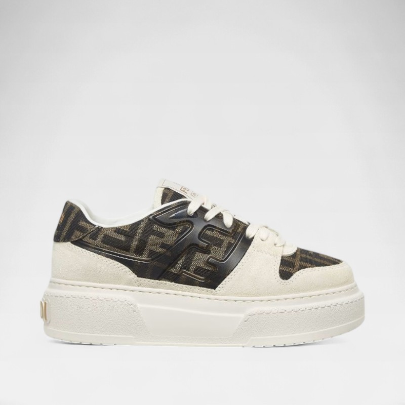 Con un aire retro y detalles contemporáneos, las Fendi Match combinan lona blanca con toques de gamuza tonal y una suela de goma con plataforma que aporta altura y estilo. El logo Fendi en el lateral y la lengüeta estampada refuerzan la identidad de la marca de forma sutil pero reconocible. Una zapatilla versátil para elevar looks casuales con un toque refinado.