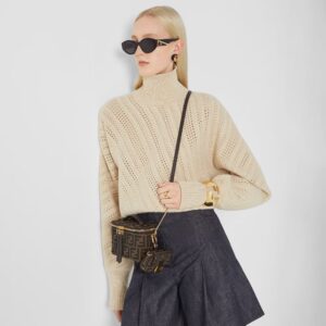 Un clásico reinterpretado en formato compacto. El Vanity Mini de Fendi está confeccionado en lona marrón con el emblemático monograma FF estampado en toda la superficie. Su diseño estructurado con asa superior y correa larga ajustable en piel marrón permite llevarlo al hombro o cruzado con comodidad. El cierre de cremallera doble con tiradores de piel y los herrajes dorados añaden un acabado sofisticado.