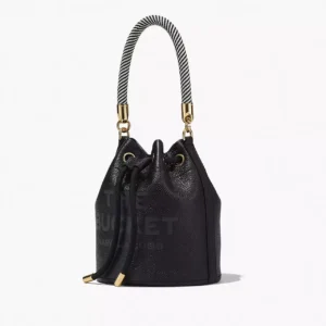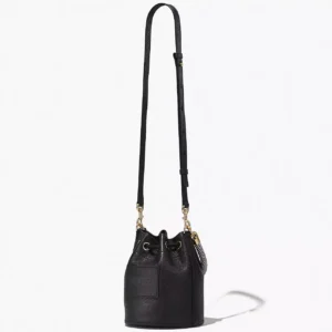 Un clásico funcional con actitud contemporánea. El Leather Bucket Bag de Marc Jacobs está confeccionado en cuero liso negro con estructura tipo cubo y detalles minimalistas. Incluye una correa de cinta ancha ajustable y removible con el logo bordado, así como un asa corta superior para mayor versatilidad. El logo dorado en la parte frontal aporta un toque discreto y elegante.