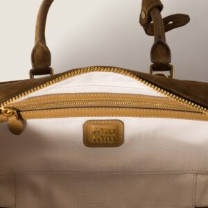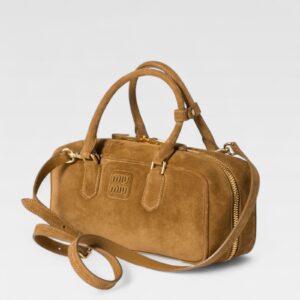 El Arcadie de Miu Miu combina estructura definida con la suavidad de la gamuza acolchada. Su silueta de asa superior está pensada para un uso versátil, con detalles en metal dorado y el logotipo esmaltado en el frente que refuerzan su carácter icónico. Puede llevarse en la mano, al hombro o cruzado gracias a su correa ajustable y desmontable, adaptándose fácilmente a diferentes estilos.