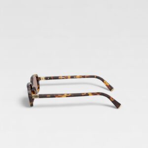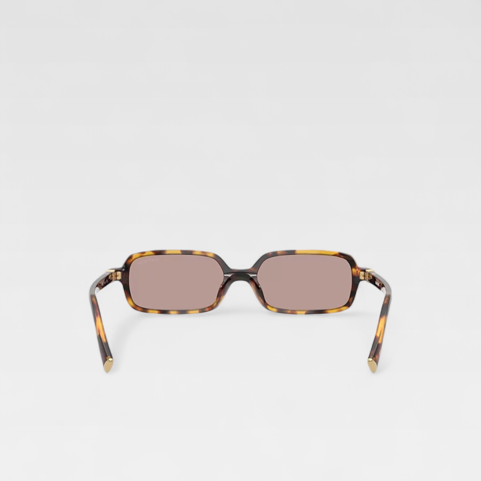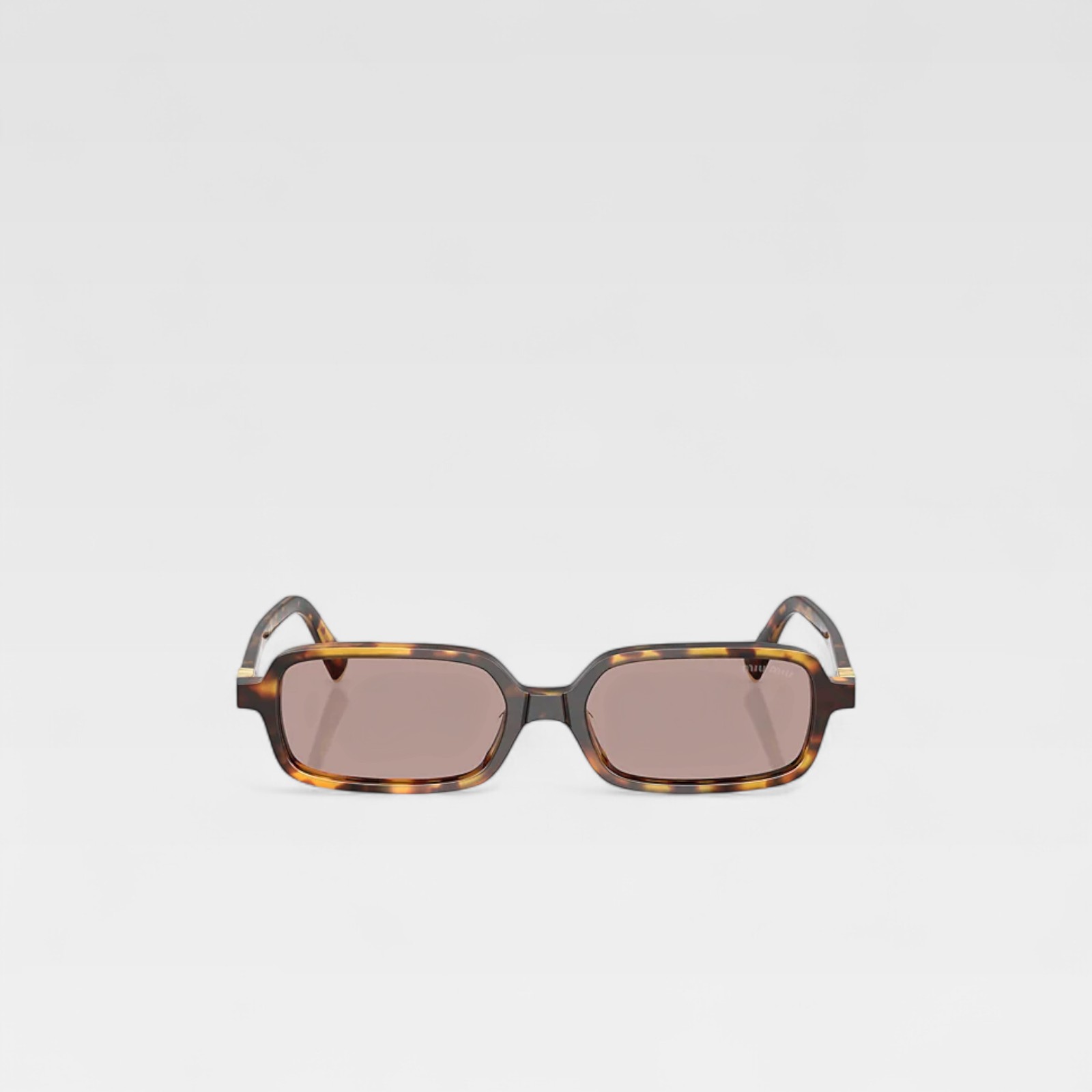 Con una silueta geométrica de inspiración retro, las Miu Miu Rectangle combinan líneas definidas con un aire moderno. Están confeccionadas en acetato color carey y presentan lentes marrones cálidas que aportan profundidad y estilo. El logo Miu Miu aparece discretamente grabado en las patillas anchas, reforzando la identidad elegante y contemporánea de la marca.