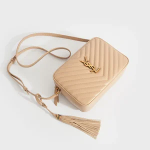 Diseño icónico y funcional. El Lou Camera Bag de Saint Laurent está confeccionado en cuero acolchado con costuras en forma de chevron y presenta un acabado en tono marrón claro que lo hace versátil para todo el año. El logo YSL metálico dorado en el frente y el charm de flecos aportan el toque distintivo de la maison. Incluye una correa ajustable para llevarlo cómodamente cruzado o al hombro.