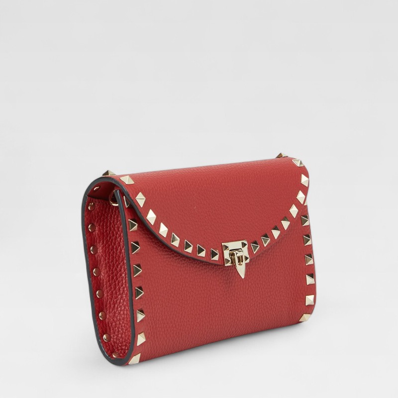Una pieza que combina elegancia clásica con un toque rebelde. Este bolso de Valentino Garavani está confeccionado en cuero rojo vibrante y decorado con las emblemáticas tachuelas doradas Rockstud, dispuestas a lo largo de los bordes. Su diseño estructurado incluye doble asa para llevarlo en la mano y una correa larga removible que permite usarlo al hombro o cruzado. Ideal para destacar en cualquier ocasión.